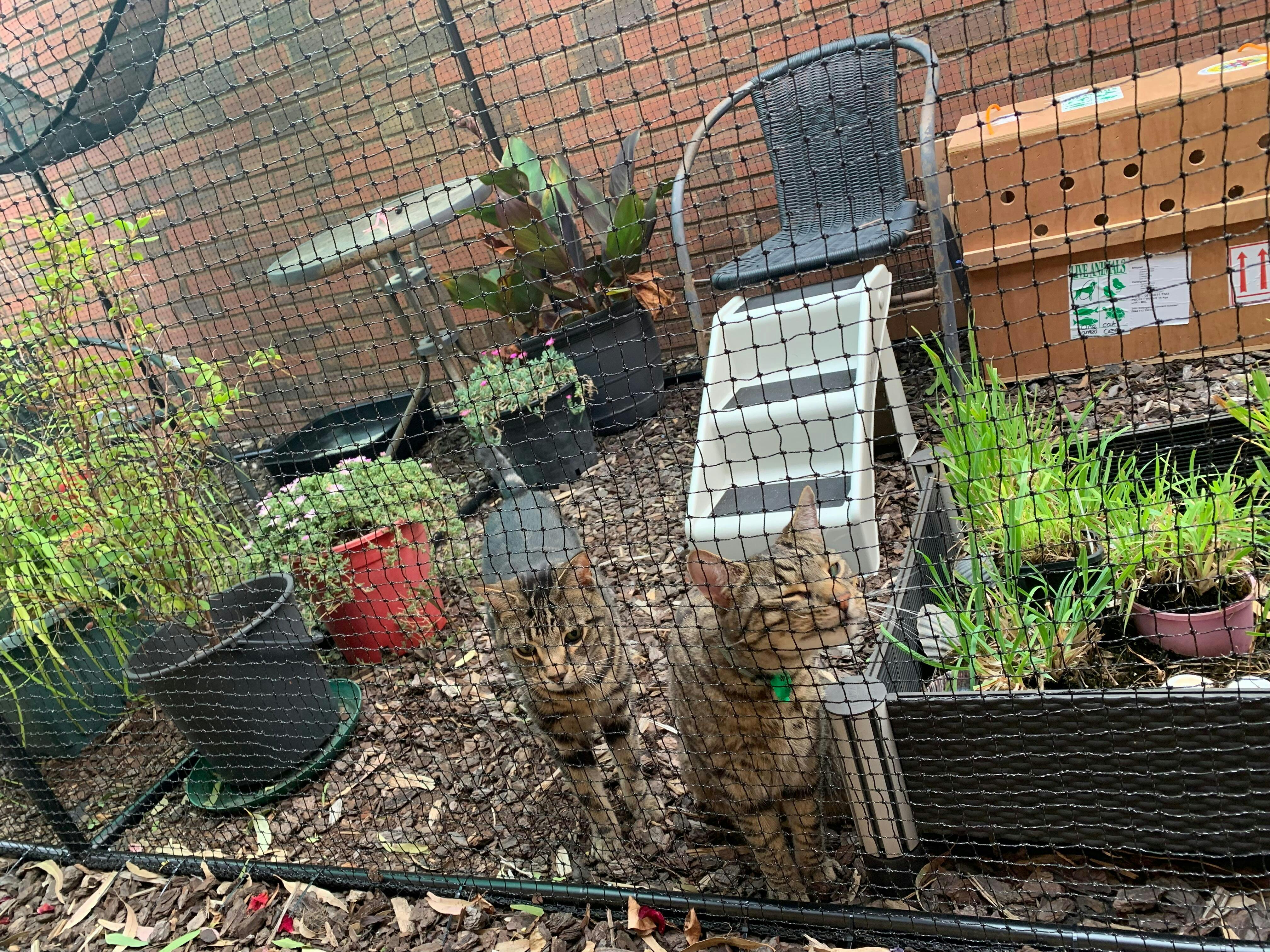Maverick and Goose absolutely love their new Catnets enclosure. It was a challenge for me to put it together on my own, but the end result is worth it when the boys tear out the back door and leap straight through the netting into their own garden space.